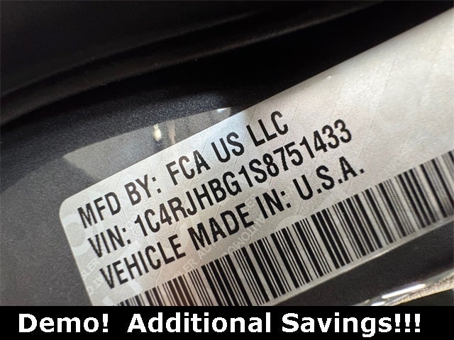 Quick Order Package 22E, 4-Wheel Disc Brakes, 6 Speakers, ABS brakes, Active Noise Control System, Air Conditioning, Alloy wheels, AM/FM radio: SiriusXM with 360L, Anti-whiplash front head restraints, Audio memory, Auto High-beam Headlights, Automatic temperature control, Brake assist, Bumpers: body-color, Capri Leatherette Seats, Compass, Delay-off headlights, Driver door bin, Driver vanity mirror, Dual front impact airbags, Dual front side impact airbags, Electronic Stability Control, Emergency communication system, Four wheel independent suspension, Front anti-roll bar, Front Bucket Seats, Front Center Armrest w/Storage, Front dual zone A/C, Front fog lights, Front reading lights, Fully automatic headlights, Garage door transmitter, Heated door mirrors, Heated front seats, Heated rear seats, Heated steering wheel, Illuminated entry, Knee airbag, Low tire pressure warning, Memory seat, Model Year Tracking, Navigation System, Normal Duty Suspension, Occupant sensing airbag, Outside temperature display, Overhead airbag, Overhead console, Panic alarm, ParkView Rear Back-Up Camera, Passenger door bin, Passenger vanity mirror, Power door mirrors, Power driver seat, Power Liftgate, Power passenger seat, Power steering, Power windows, Radio data system, Radio: Uconnect 5 Nav with 10.1 Display, Rear anti-roll bar, Rear reading lights, Rear window defroster, Rear window wiper, Remote keyless entry, Security system, Speed control, Speed-Sensitive Wipers, Split folding rear seat, Spoiler, Steering wheel mounted audio controls, Tachometer, Telescoping steering wheel, Tilt steering wheel, Traction control, Trip computer, Turn signal indicator mirrors, Variably intermittent wipers, Voltmeter, and Wheels: 18 x 8 Polished/Painted Aluminum. Prices based on dealer discounts and rebates. Some rebates may be for lease to purchase program, see dealer for details. Not all customers qualify for all rebates.$1500 - 2025 National Stellantis Loyalty Retail Bonus Cash . Exp. 02/02/2026 $2250 - 2025 National Retail Bonus Cash . Exp. 02/02/2026 $750 - 2025 Great Lakes BC Retail Bonus Cash. Exp. 02/02/2026