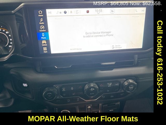 Receive a FREE 10 Year 100,000 Miles Warranty with the purchase or lease of any New Vehicle, Leather, 4WD | Four Wheel Drive, Auto High Beam Headlamp Control, Aux Battery, Auxiliary Switches, Body Color 3-Piece Hard Top, Body Color Rubicon Highline Flare, Convenience Group, Front Bucket Seats, Front dual zone A/C, Heated door mirrors, Heated Front Seats, Heated Steering Wheel, MOPAR All-Weather Floor Mats, MOPAR Hardtop Headliner, Myflexcare Service Plan, Power door mirrors, Radio: Uconnect 5 with 12.3 Display, Rear Window Defroster, Rear Window Wiper/Washer, Safety Group, Steel Bumper Group.