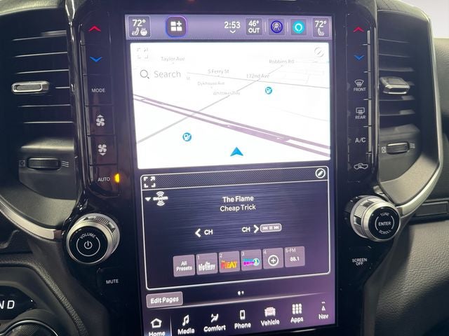 Elevate your daily drives with the impressive technology and comfort features of this exceptional Ram 1500. The large 12-inch touchscreen display puts vital information and cutting-edge connectivity at your fingertips, while the premium audio system and heated seats and steering wheel ensure a relaxing and enjoyable ride, no matter the weather.