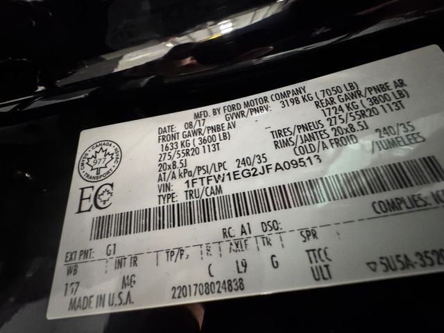 3.31 Axle Ratio, 4-Wheel Disc Brakes, ABS brakes, Air Conditioning, Brake assist, Class IV Trailer Hitch Receiver, Compass, Delay-off headlights, Driver door bin, Dual front impact airbags, Dual front side impact airbags, Electronic Stability Control, Exterior Parking Camera Rear, Front anti-roll bar, Front wheel independent suspension, Fully automatic headlights, Low tire pressure warning, Occupant sensing airbag, Outside temperature display, Overhead airbag, Passenger door bin, Passenger vanity mirror, Power steering, Rear step bumper, Speed-sensing steering, Split folding rear seat, SYNC 3, Tachometer, Telescoping steering wheel, Tilt steering wheel, Traction control, Variably intermittent wipers, and Voltmeter.