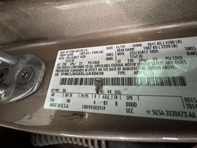 Desert Gold Metallic 2020 Ford Escape SE 1.5 Liter EcoBoost AWD 1.5 Liter EcoBoost AWD AWD 8-Speed Automatic 1.5L EcoBoost 26/31 City/Highway MPG