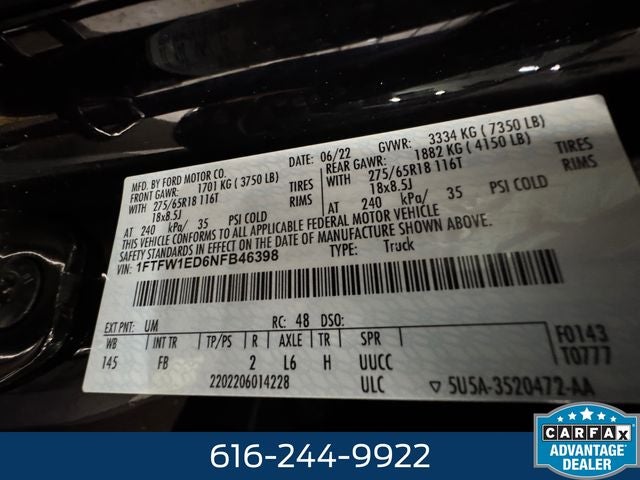 Agate Black Metallic 2022 Ford F-150 XLT 3.5 Liter V6 SuperCrew PowerBoost Hybrid 4WD 3.5 Liter V6 SuperCrew PowerBoost Hybrid 4WD 4WD 10-Speed Automatic 3.5L PowerBoost Full-Hybrid V6 23/23 City/Highway MPG
