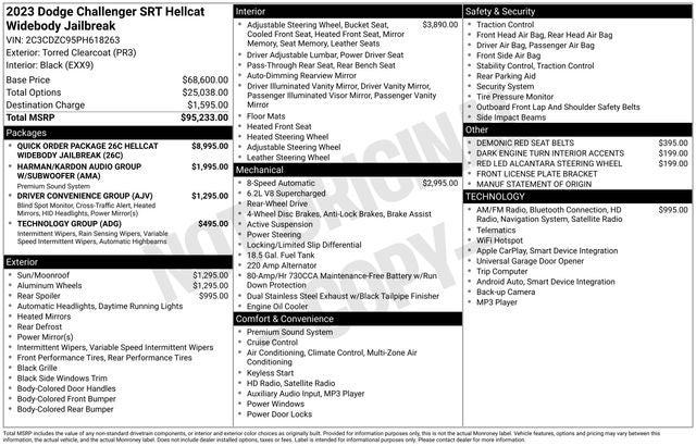 2023 Dodge Challenger SRT Hellcat Jailbreak 6.2 Liter V8 Supercharged 2D coupe RWD Automatic