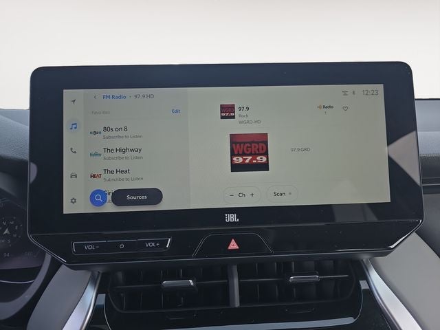 - Radio: Premium Audio w/Dynamic Navigation & JBL -inc: 12.3" touchscreen w/Intelligent Touch capacitive controls, AM/FM/HD Radio, 9 speakers w/subwoofer and amplifier, 1 USB and 1 AUX media port, 3 additional USB charge ports, Dynamic POI Search, Dynamic Voice Recognition, hands-free phone capability and music streaming via Bluetooth® wireless technology, Android Auto, Apple CarPlay and Amazon Alexa compatible, SiriusXM w/3-month All Access trial, Connected Services - Safety Connect w/1-year trial, Service Connect w/10-year trial, Remote Connect w/1-year trial, Wi-Fi Connect w/up to 2 GB within 3-month trial and Destination Assist w/1-year trial, See toyota.com/audio-multimedia and toyota.com/connected-services for details